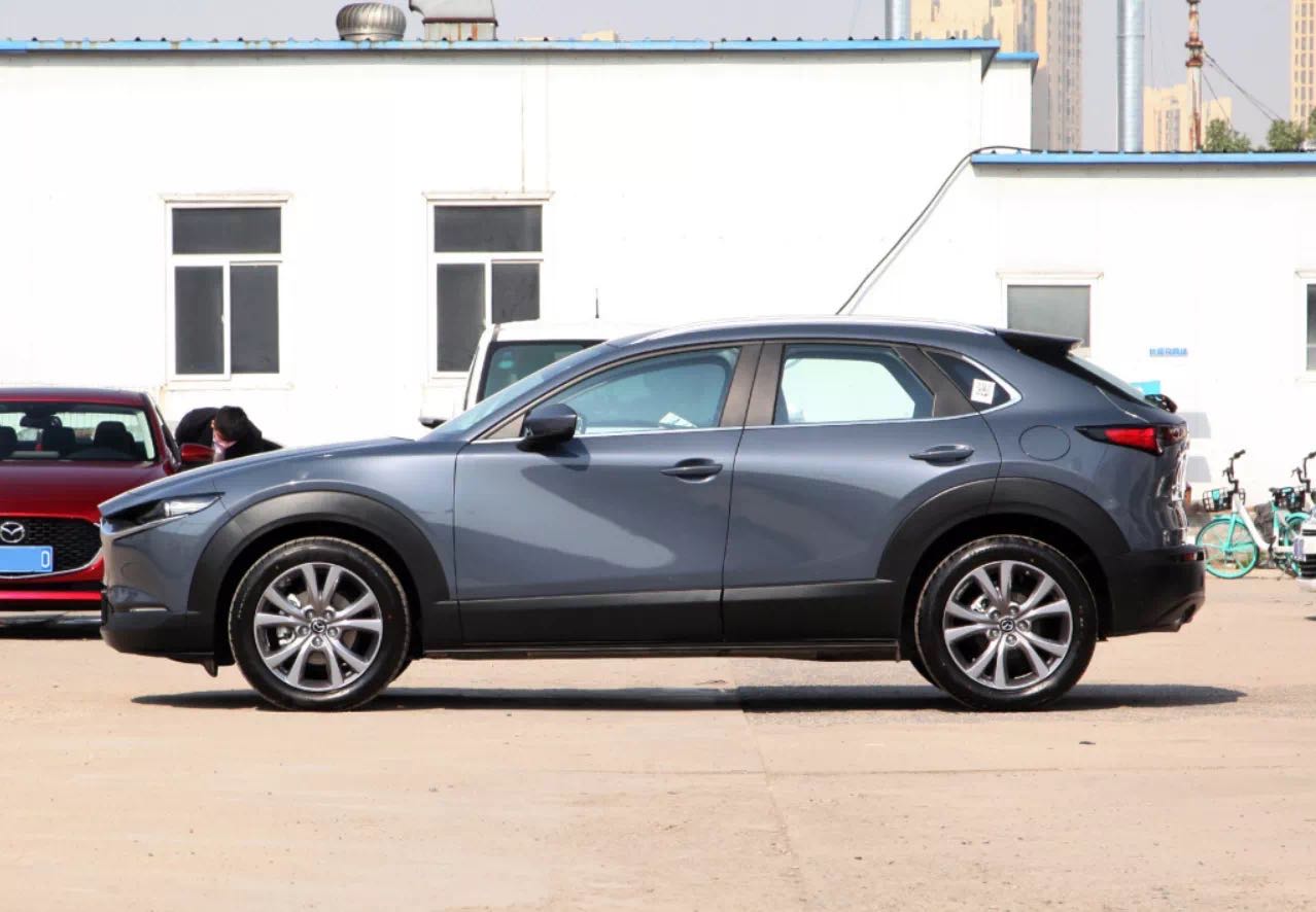 從車(chē)身側面來(lái)看,MAZDA CX-30的車(chē)身前/短后懸比較短,高度較低,粗壯的黑色塑料包圍則體現了它的Crossover風(fēng)格。值得一提的是,這款國產(chǎn)新車(chē)的車(chē)身采用無(wú)腰線(xiàn)設計,通過(guò)鈑金工藝勾勒出立體感的S型光影效果,使得車(chē)身看起來(lái)更為動(dòng)感。